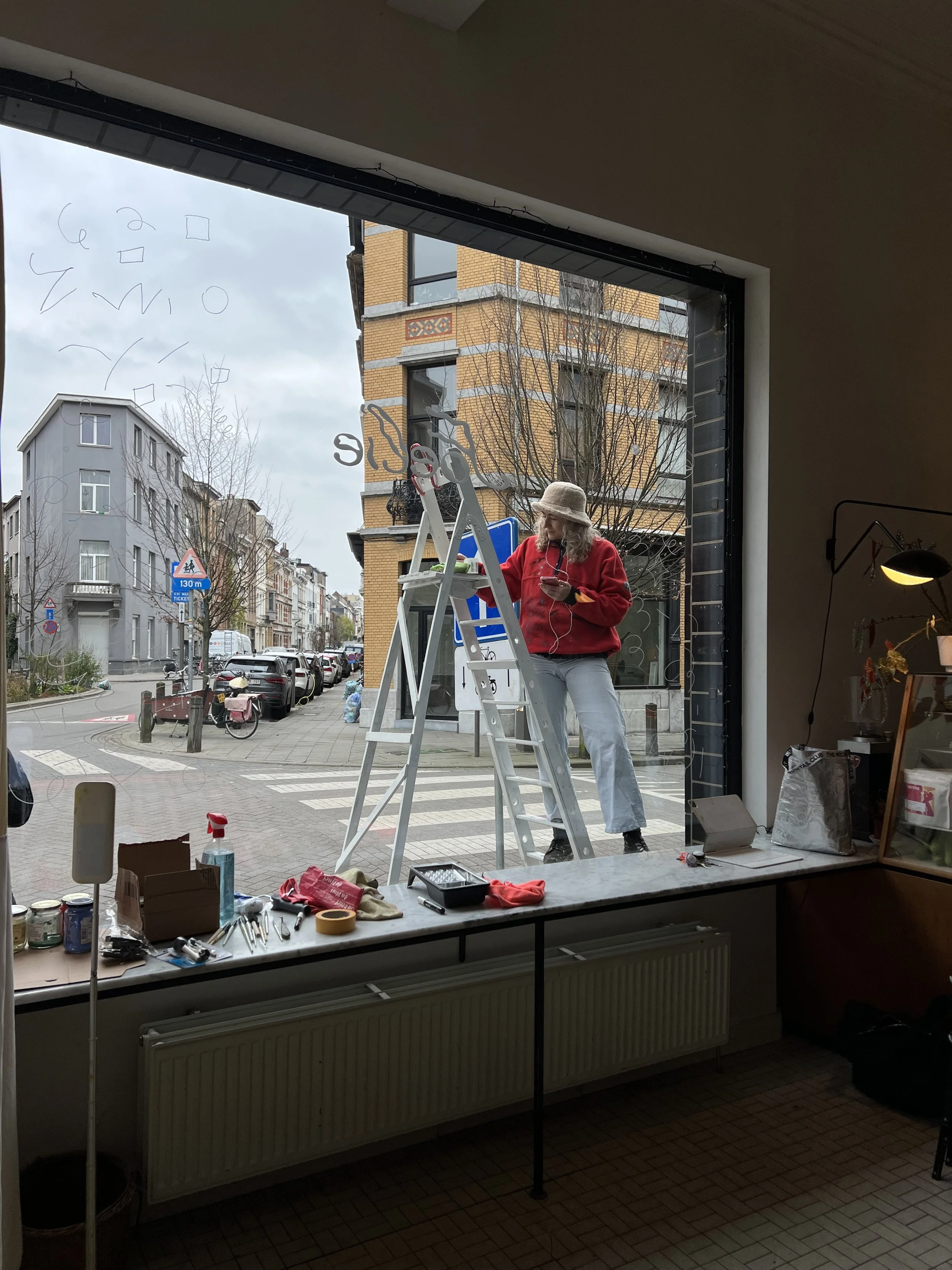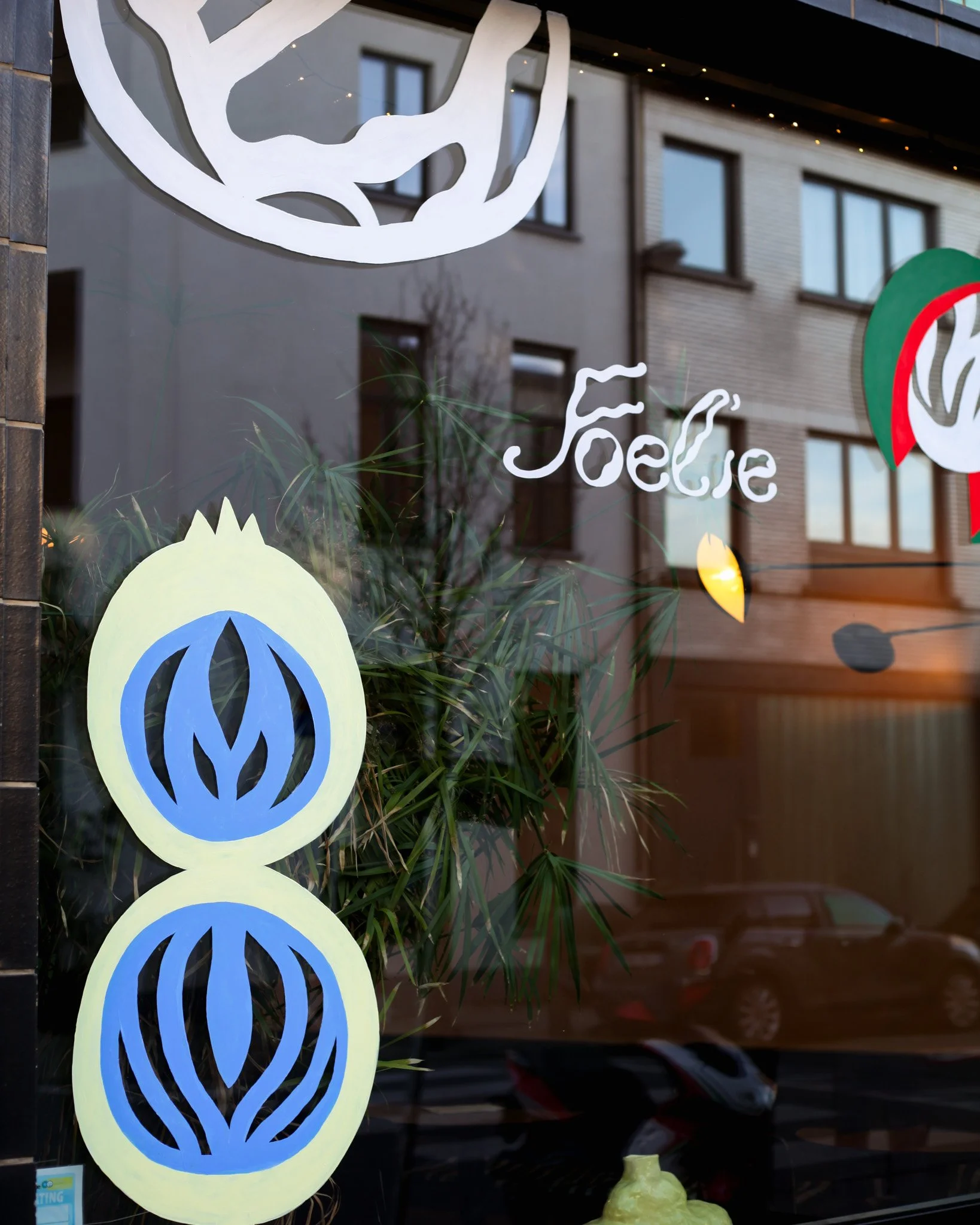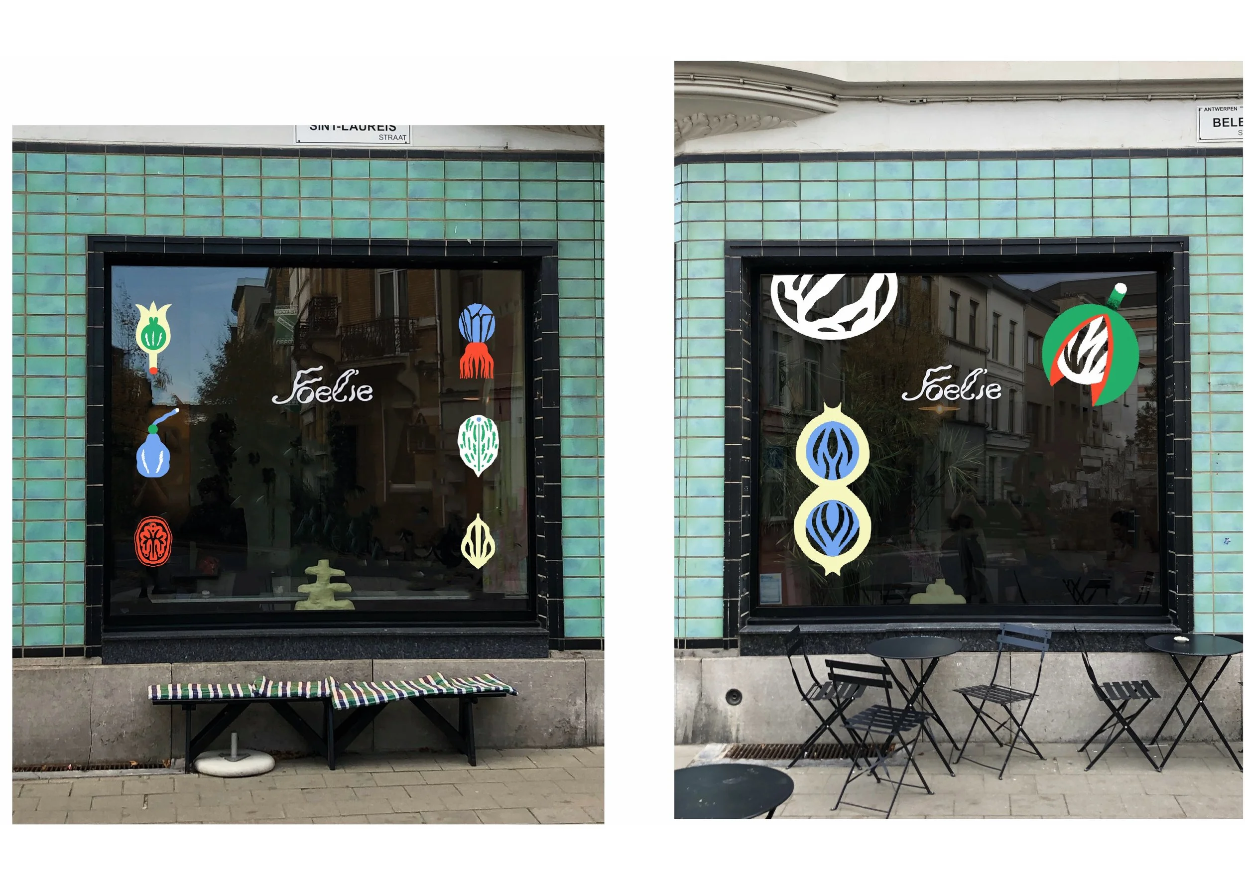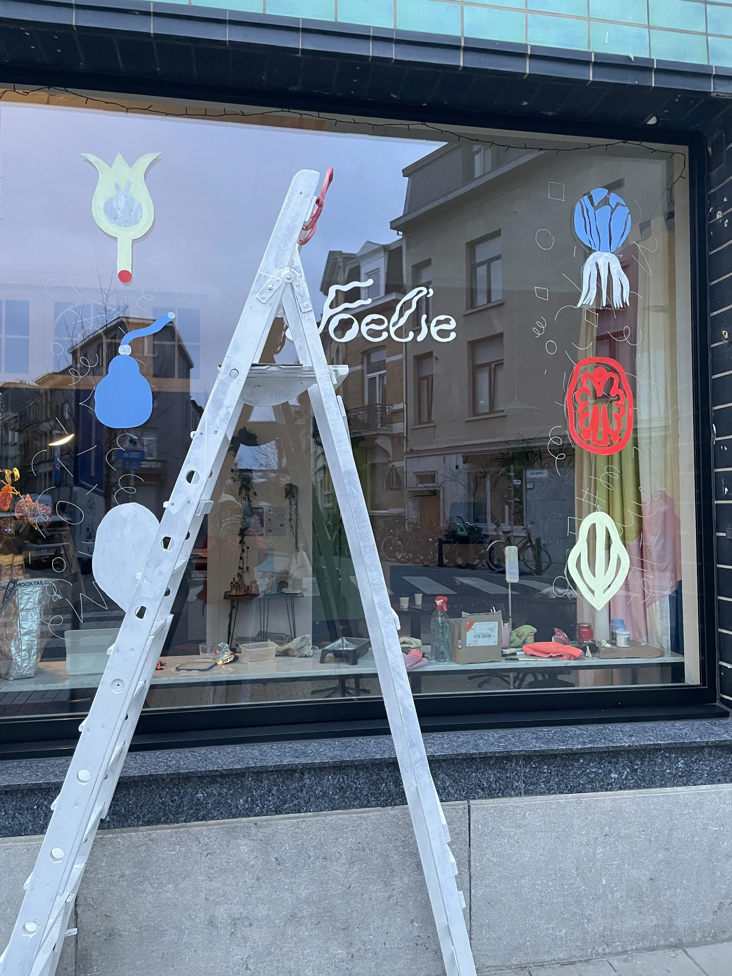Brightening up the corner of Belegstraat with vibrant window paintings that instantly make passersby and Foelie’s customers happy.